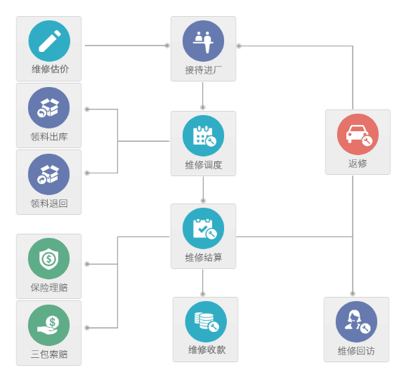 维修调度/领料/结算管理 |